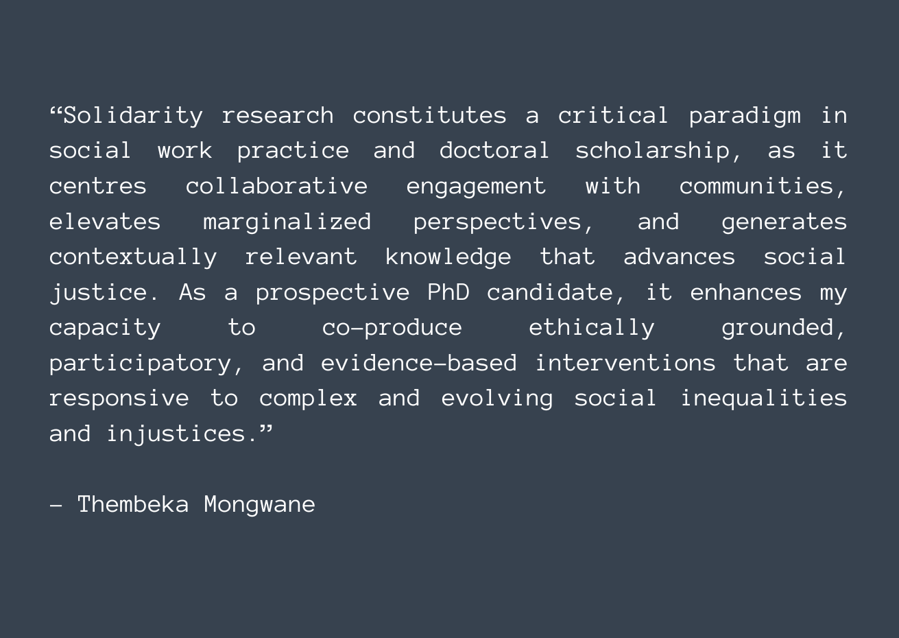 The members of the SRN embody a wide range of perspectives on the concept of solidarity. The following statements exemplify a selection of these diverse viewpoints.